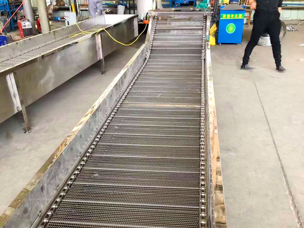 輸送機(jī)輸送能力大,運(yùn)距長,還可在輸送過程中同時完成若干工藝操作,所以應(yīng)用十分廣泛。網(wǎng)鏈輸送機(jī)用于物料的輸送。采用不銹鋼網(wǎng)帶作為載體,適用于各種食品行業(yè)的烘干、去濕、冷凍等、熱處理等;不銹鋼制成,具有耐高溫、便于清洗等特點(diǎn)。